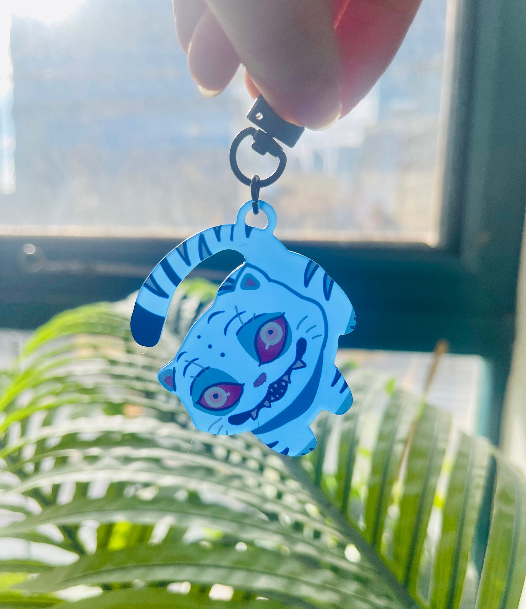 derpy printed on gummy blue frosted acrylic!! approx 2" in height, comes with a dark blue keyclip.