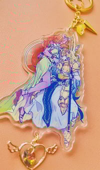 4.5" acrylic clear charm featuring the fury & the matron from the twelve. comes with 3 accessory chain drops & gold keyring!!